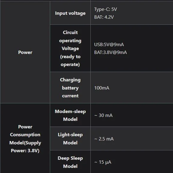 9mA circuit operating voltage on battery power, but 30mA in modem-sleep seems…odd. Unless they meant 3.0, in which case that would make a lot more sense. I have submitted a ticket to Seeed Studio to ask them about it directly.