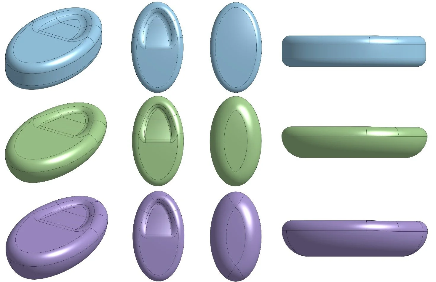 Lisa was quite impressed with these tabs, but she said that she likes the feel of the V3 case significantly more, since it sits in the full hand rather than just held between three fingers. This was my exact thought process when making my design. The thumb indentation that the tabs have was an interesting idea, similar to a worry stone, but they didn’t look very satisfying to hold. So, I kept the thumb indentation and then made them larger and longer to fully fit in the hand. Lisa is very excited to see the finished prototype now after holding the concept print.