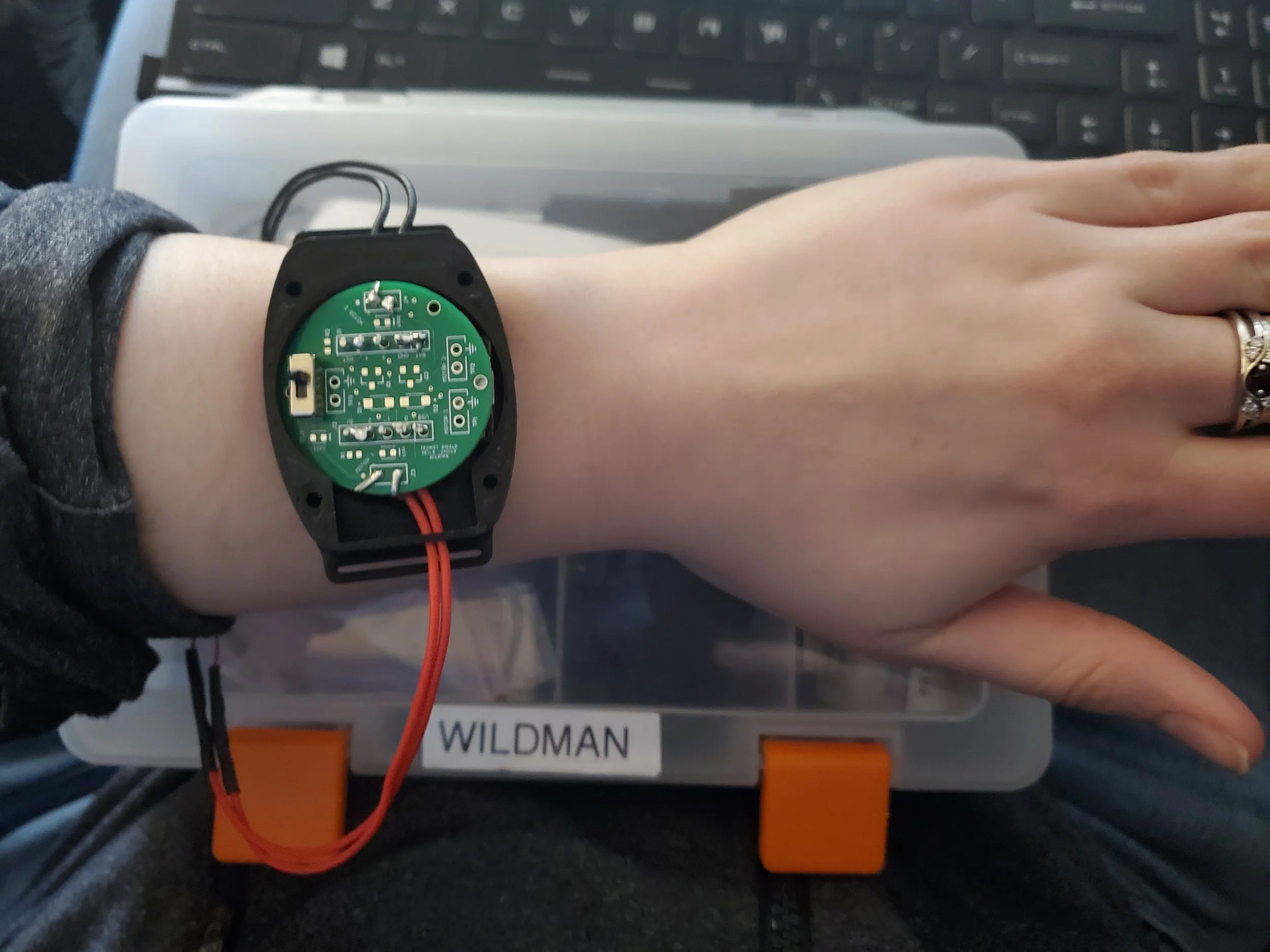 The device did not fit the first user very well due to her tiny wrists, so we tested it halfway up her arm. She said that the vibration felt like a massage on her arm, which she pointed out is sort of soothing. When asked if she thought it would be effective if she were in distress, she believed it would be.