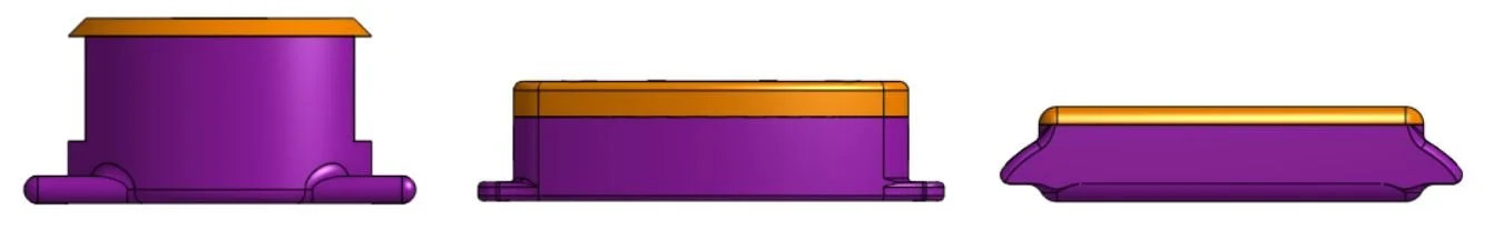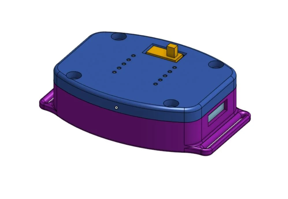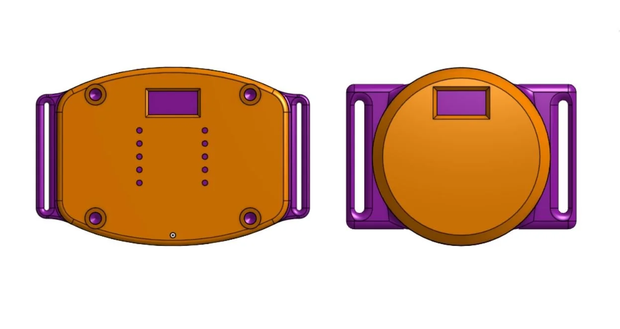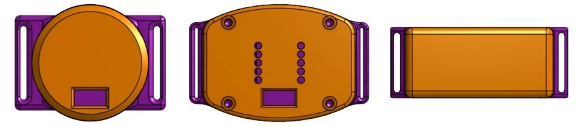 This case was 10.87mm tall, 20.8mm wide, and 51.97mm long. The scale was significantly better for smaller wrists, but the length was still an issue because the ends stuck out awkwardly. Other problems included that a switch was not accounted for, there was very little room for wires, the tabs for the wristband were weak, and the cap was attached by tiny M1.2 screws that were extremely difficult to secure. Despite the issues, this is the foundation model for the final case design.