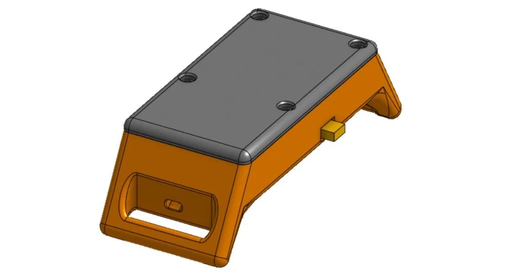 Small notches were added to allow for wire clearance and two small holes were added to each side near the base to thread the motor wires through. As for the battery connector, the original plan was to have it located underneath the Trinket assembly. It was found when assembling the device that there was room for it on top of the battery itself, so it was ultimately relocated there, which made accessing the connector for charging possible.